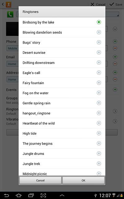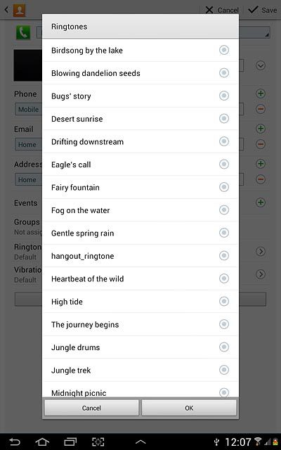 Once you've found a ring tone you like, press the field next to the ring tone.