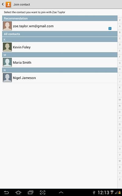 If you retrieve your contacts from social networks or email accounts and add them to the device address book, the same contact may be displayed more than once. You can merge identical contacts so that they will appear only once. Follow these instructions to merge identical contacts.