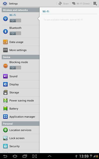 You can use Wi-Fi for various functions on your device that require a data connection, such as internet access. Follow these instructions to turn Wi-Fi on or off.