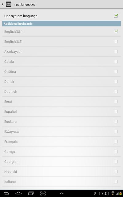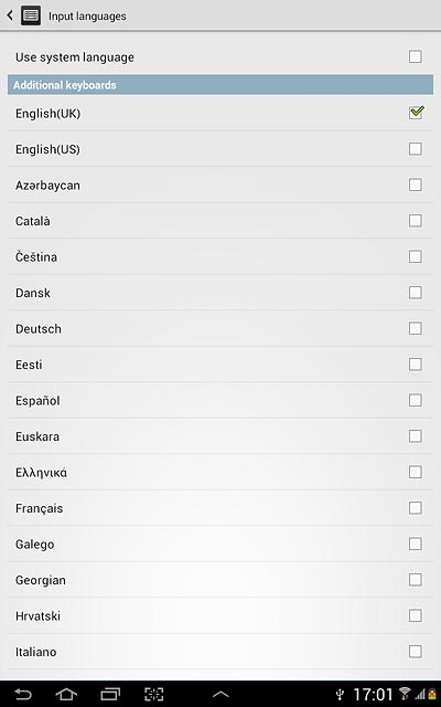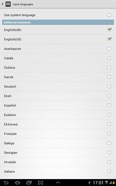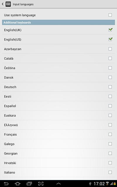 Press Use system language to turn off the function.