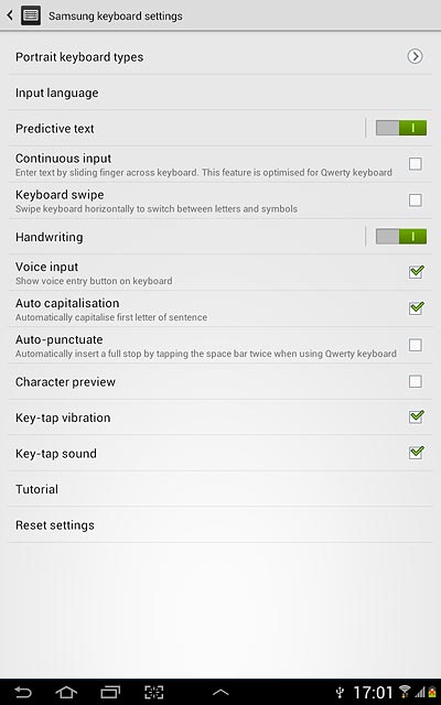 Press the indicator next to Predictive text to turn on the function.