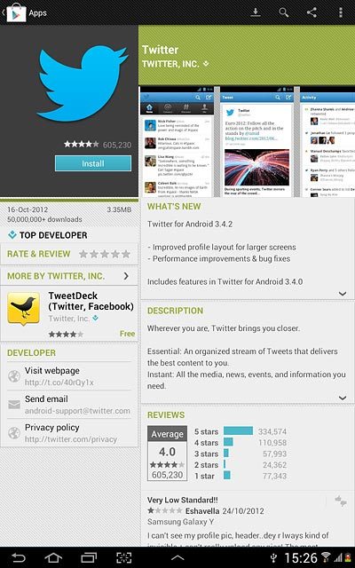 Twitter is a social network allowing you to write your own and read others' status updates in messages not exceeding 140 characters. The status updates are displayed on your profile and are received by people who follow you. You decide who you want to receive status updates from. Before you can use the application, it needs to be downloaded and installed. Follow these instructions to install Twitter.