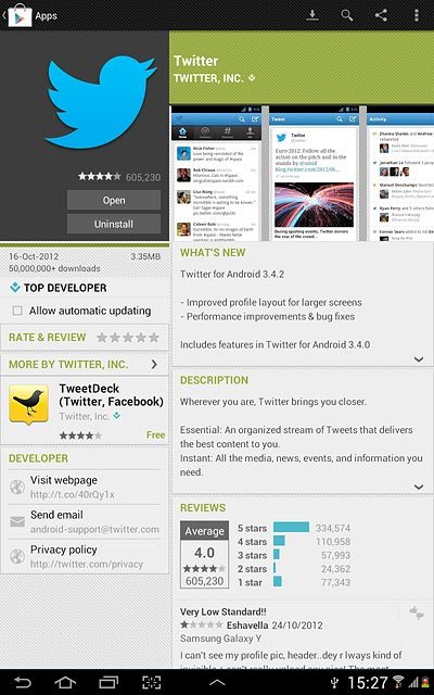 When the installation is complete, you can use Twitter on your device. Click here for information on how to use Twitter.
