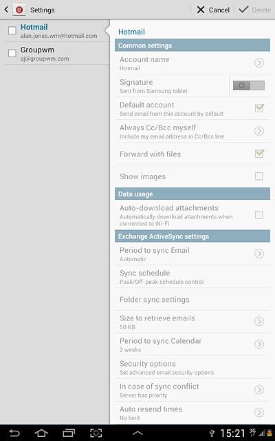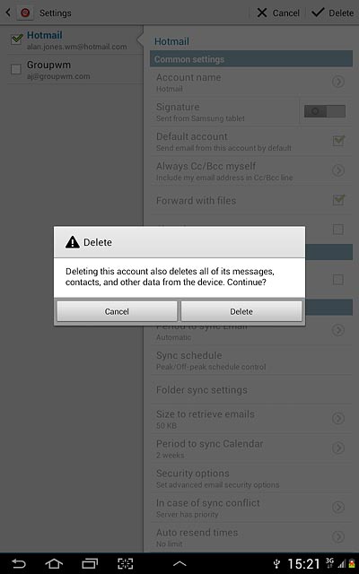 4. Delete email account