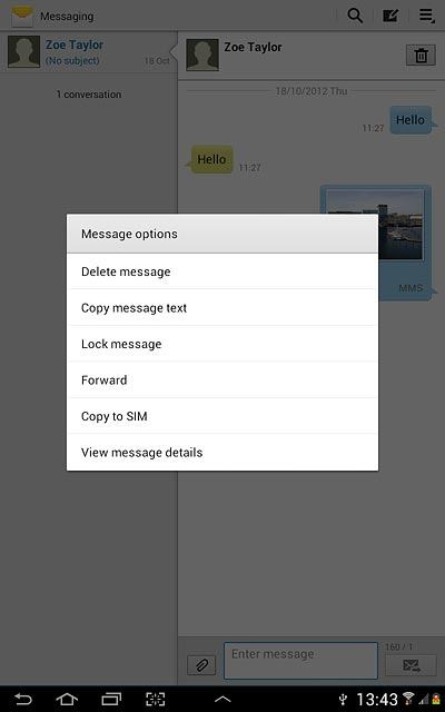Press and hold the required text message until a pop-up menu is displayed.