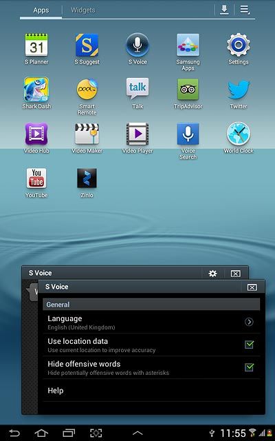 Using S Voice you can control many of the device functions with your voice. You can call contacts from the address book, dictate messages and search the internet. Follow these instructions to select settings for voice control.