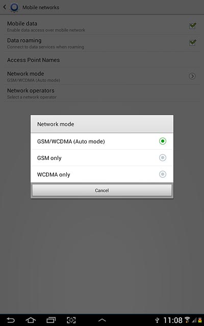 Press GSM/WCDMA (Auto mode), GSM only or WCDMA only.