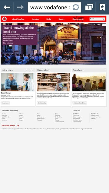 Key in the address of the required web page and press Go.