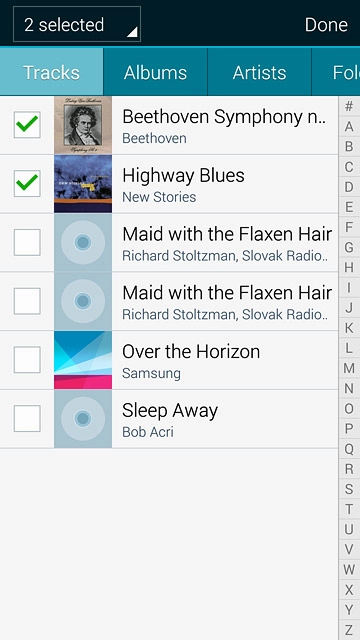 Press the required audio files to select them.