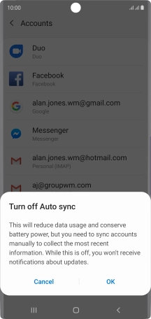 Press the indicator next to "Auto sync data" to turn the function on or off.