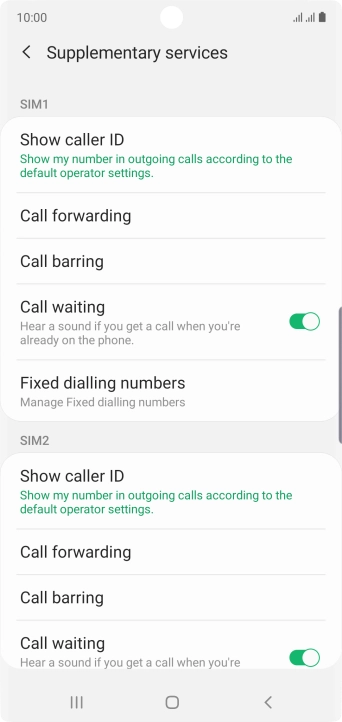 Press Call forwarding below the required SIM.