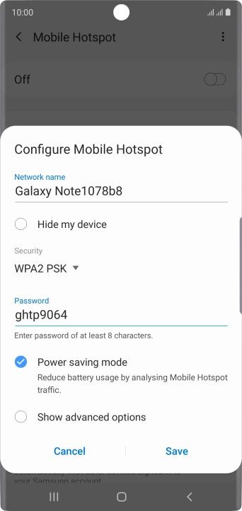 Press WPA2 PSK to password protect your Wi-Fi hotspot.