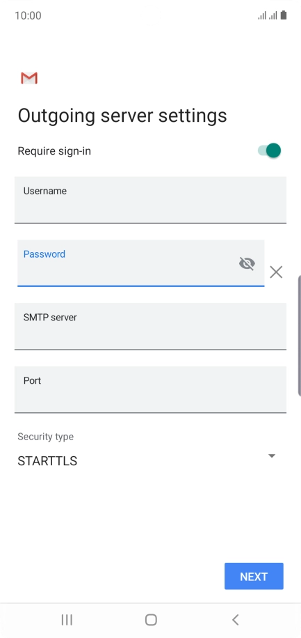 Press the field below "Password" and key in the password for your email account.