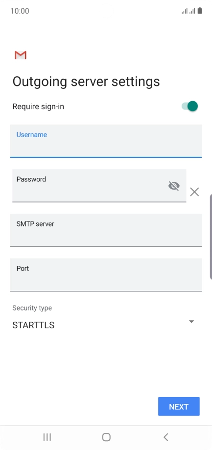 Press the field below "Username" and key in the username for your email the email provider's outgoing server.