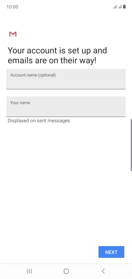 If this screen is displayed, you email account has been recognised and set up automatically. Follow the instructions on the screen to key in more information and finish setting up your phone.