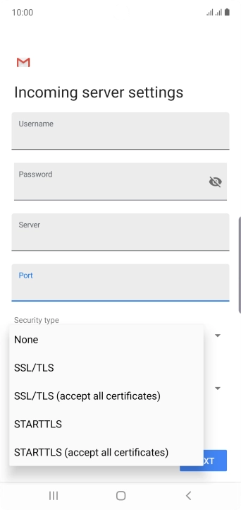 Press the field below "Server" and key in the name of your email provider's incoming server.