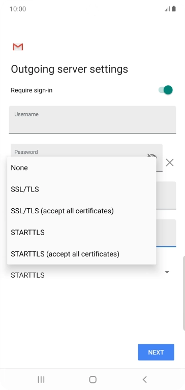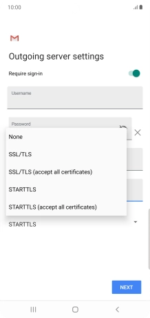 Press the field below "Username" and key in the username for your email the email provider's outgoing server.