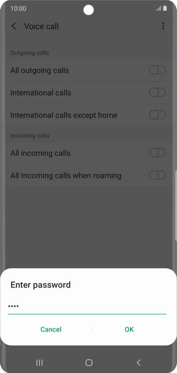 Key in your barring password and press OK. The default barring password is 0000.