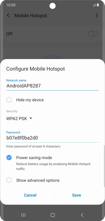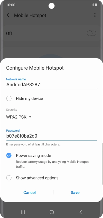 Press WPA2 PSK to password protect your Wi-Fi hotspot.