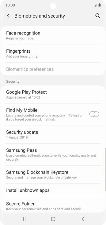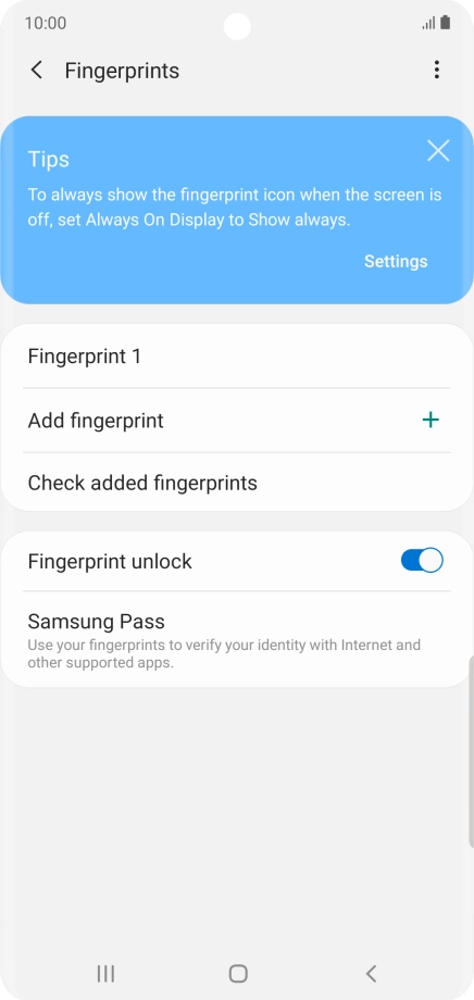 Press the indicator next to "Fingerprint unlock" to turn the function on or off.