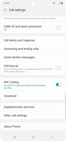 Press the indicator next to "WiFi Calling" to turn the function on or off.