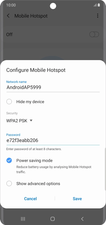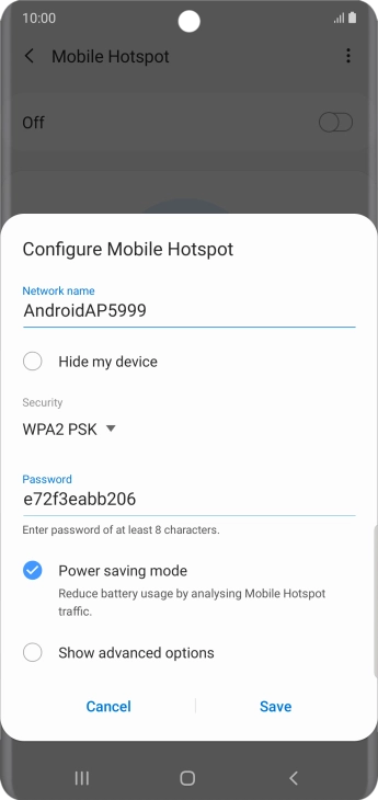 Press WPA2 PSK to password protect your Wi-Fi hotspot.