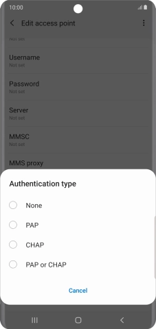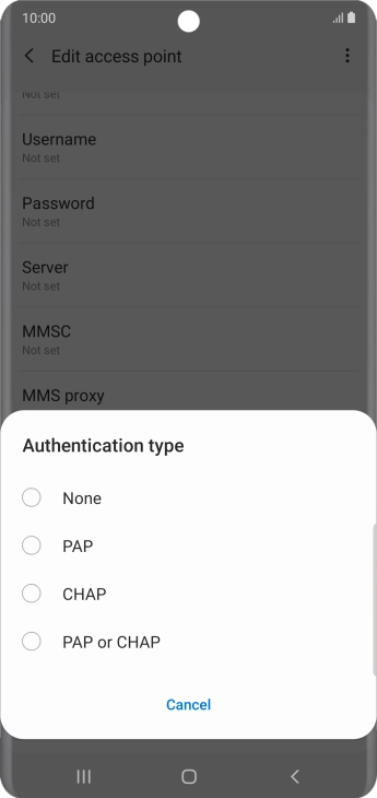 Enter APN type