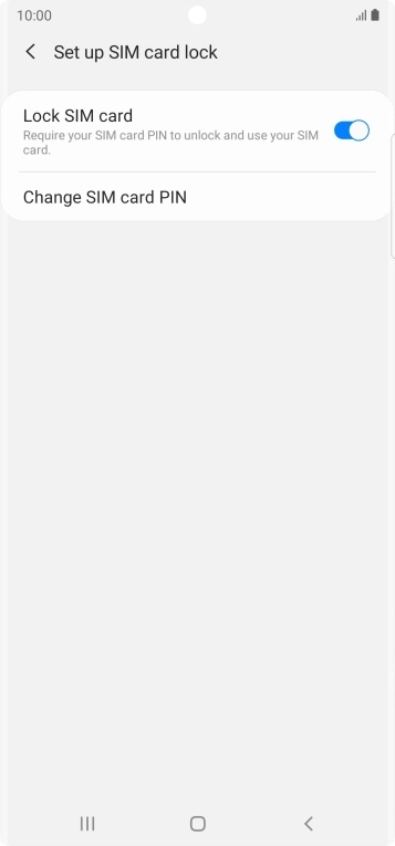 Press the indicator next to "Lock SIM card" to turn the function on or off.