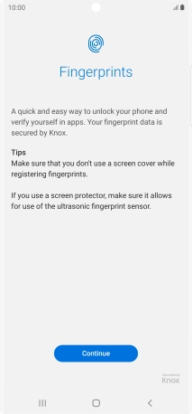Follow the instructions on the screen to create the phone lock code using your fingerprint.