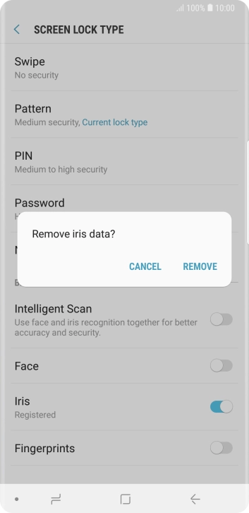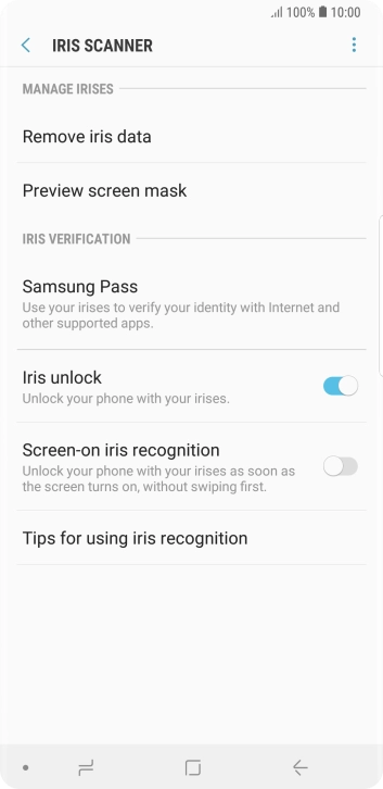 Follow the instructions on the screen to create the phone lock code using iris scanning.