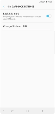 Press the indicator next to "Lock SIM card" to turn the function on or off.
