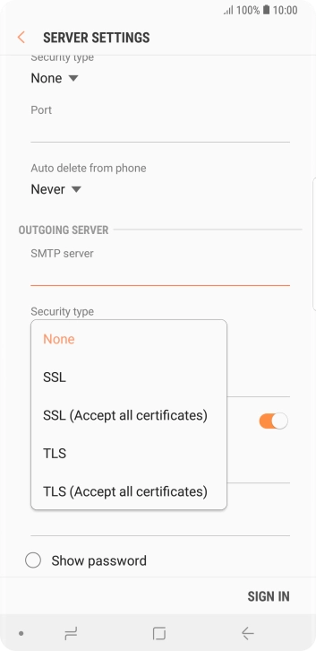 Press the field below "Password" and key in the password of your email provider's outgoing server.