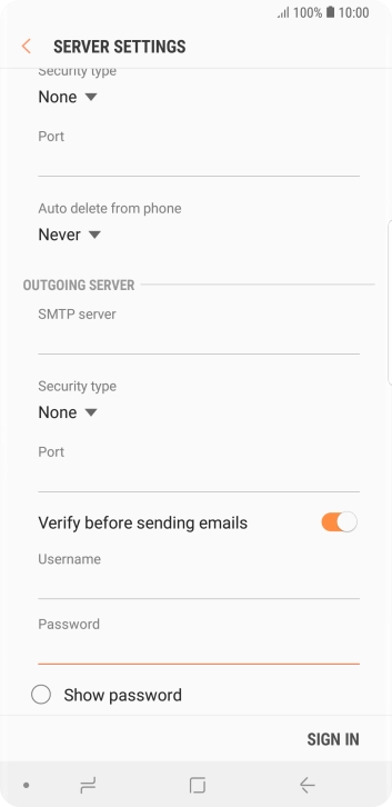 Press the field below "SMTP server" and key in the name of your email provider's outgoing server.