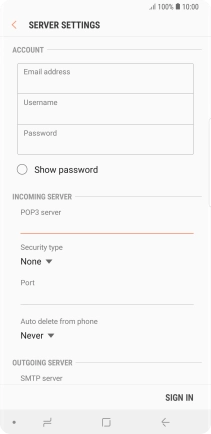 Press the field below "POP3 server" and key in the name of your email provider's incoming server.
