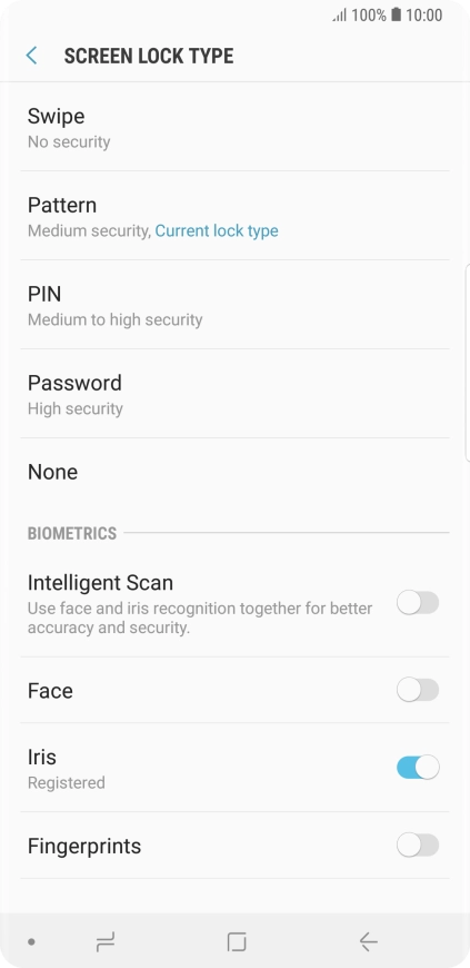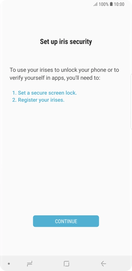 Follow the instructions on the screen to create the phone lock code using iris scanning.