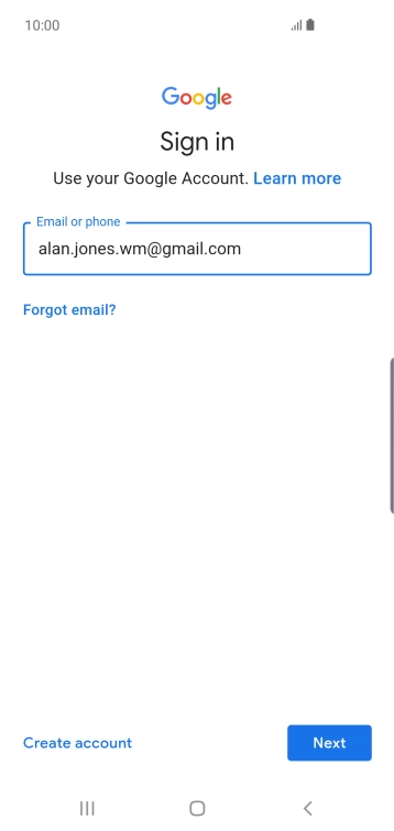 If you don't have a Google account, press Create account and follow the instructions on the screen to create an account.