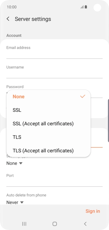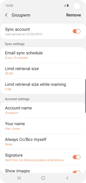 Press When deleted from Inbox to delete email messages on the server when you delete them on your phone.