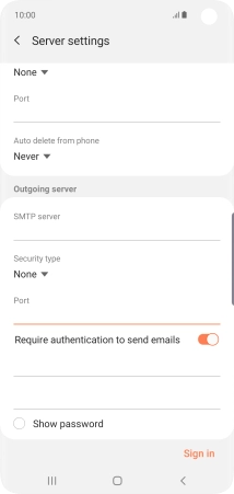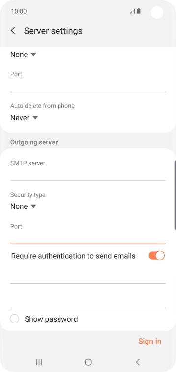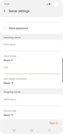 Press the field below "SMTP server" and key in the name of your email provider's outgoing server.
