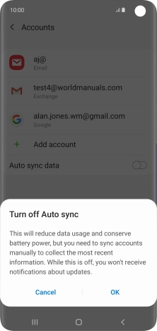 Press the indicator next to "Auto sync data" to turn the function on or off.