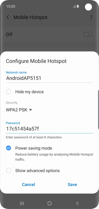 Press WPA2 PSK to password protect your Wi-Fi hotspot.