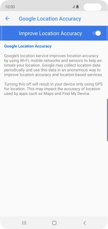If you press the indicator next to "Improve Location Accuracy" to turn off the function, your phone can find your exact position using the GPS satellites but it may take longer as there is no access to supplementary information from the mobile network or nearby Wi-Fi networks.