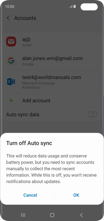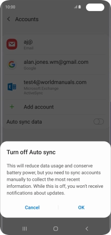 Press the indicator next to "Auto sync data" to turn the function on or off.