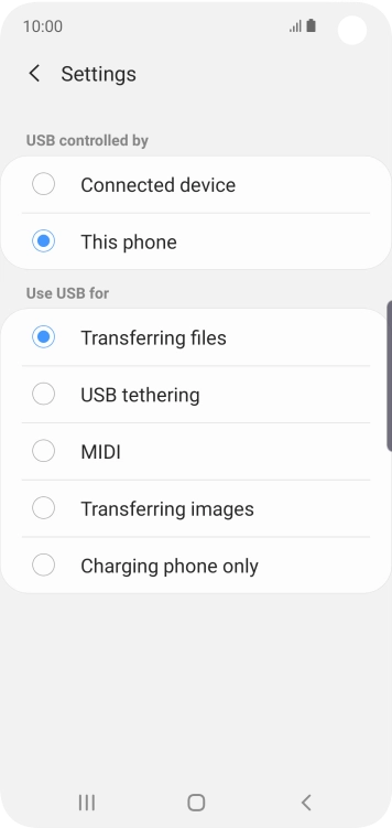 Press Tap for other USB options..