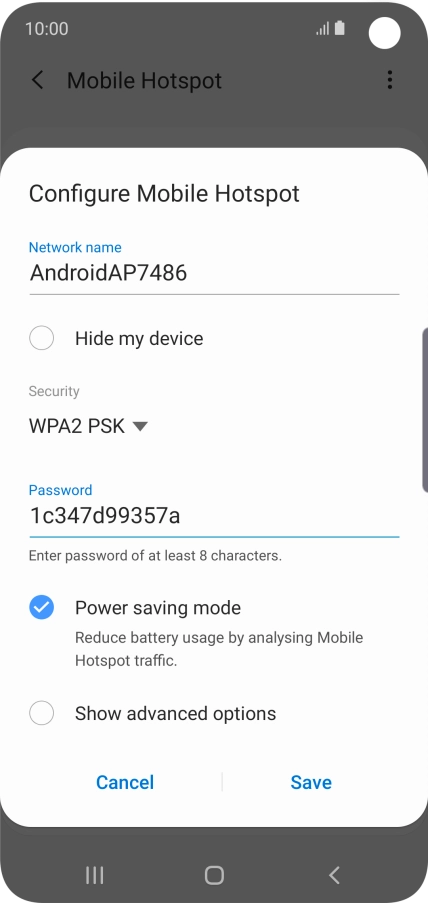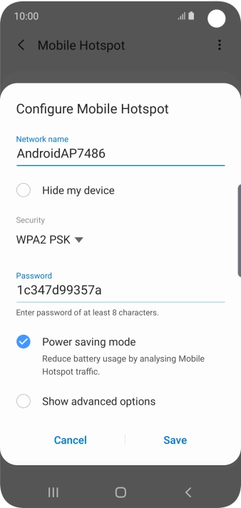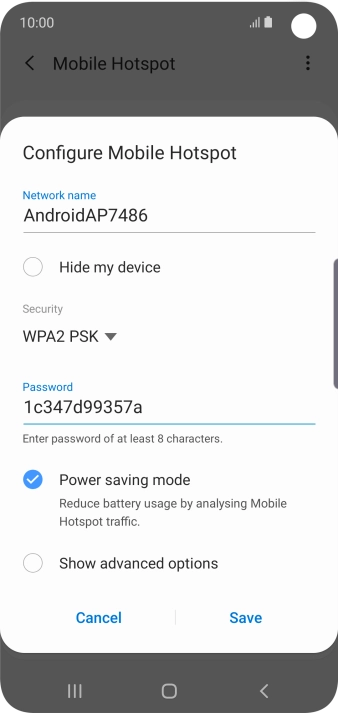 Press WPA2 PSK to password protect your Wi-Fi hotspot.