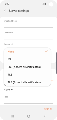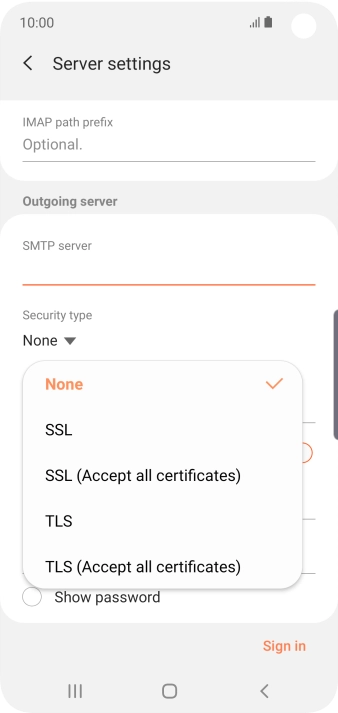 Press the field below "SMTP server" and key in the name of your email provider's outgoing server.