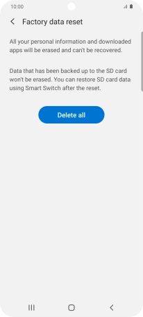 Press Delete all. Wait a moment while the factory default settings are restored. Follow the instructions on the screen to set up your phone and prepare it for use.