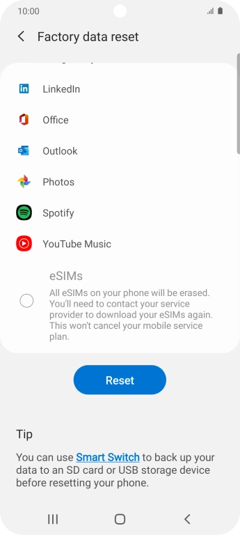 Press Factory data reset.