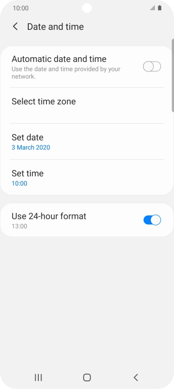 Press the indicator next to "Automatic date and time" to turn on the function.