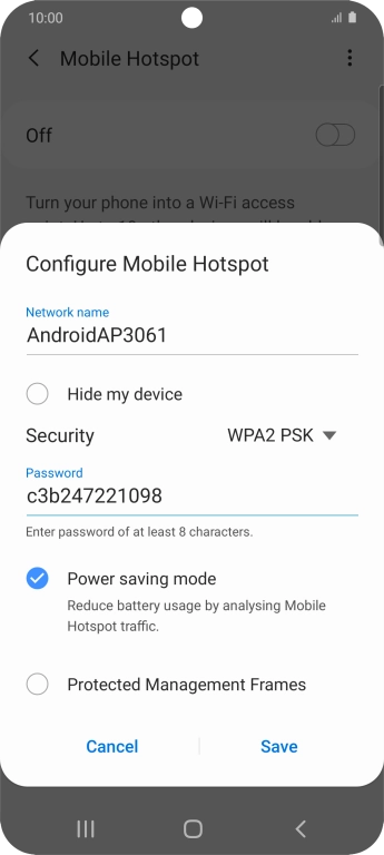 Press WPA2 PSK to password protect your Wi-Fi hotspot.