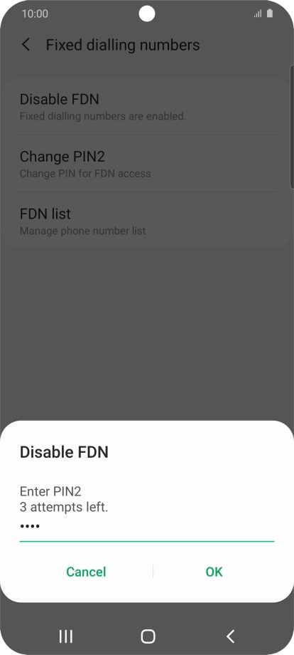 3 Turn off fixed dialling